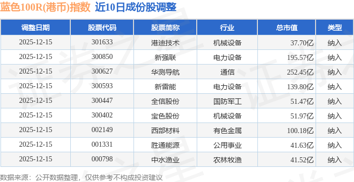 近10日内蓝色100R(港币)(480069)指数成份股做了调整,新纳入了9只股票。