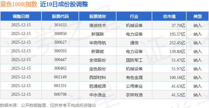近10日内蓝色100R(480068)指数成份股做了调整,新纳入了9只股票。
