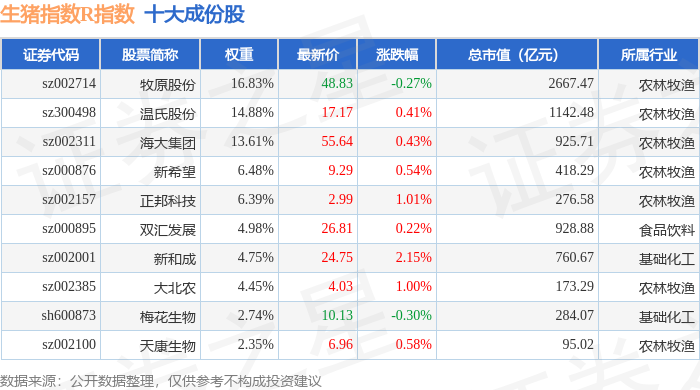 生猪指数R(480073)指数十大成份股详情如下: