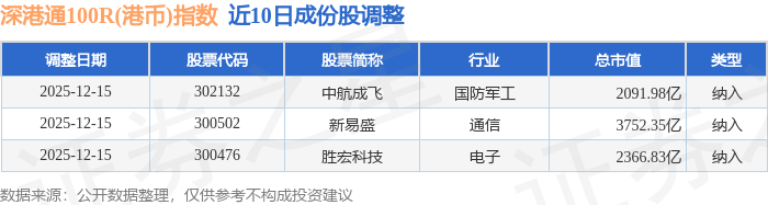 近10日内深港通100R(港币)(483008)指数成份股做了调整,新纳入了3只股票。