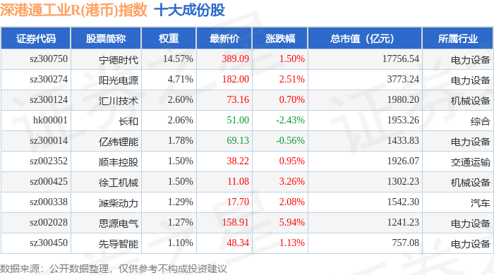 深港通工业R(港币)(483018)指数十大成份股详情如下: