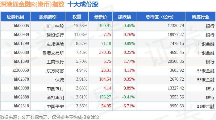 深港通金融R(港币)(483026)指数十大成份股详情如下: