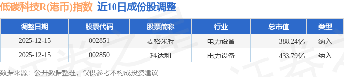 近10日内低碳科技R(港币)(483161)指数成份股做了调整,新纳入了2只股票。