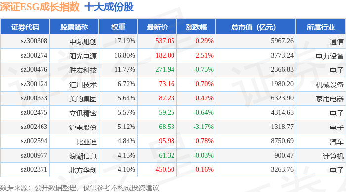 资金流向方面,深证ESG成长(970060)指数成份股当日主力资金净流入合计8.7亿元,游资资金净流出合计305.92万元,散户资金净流出合计8.67亿元。成份股资金流向详情见下表: