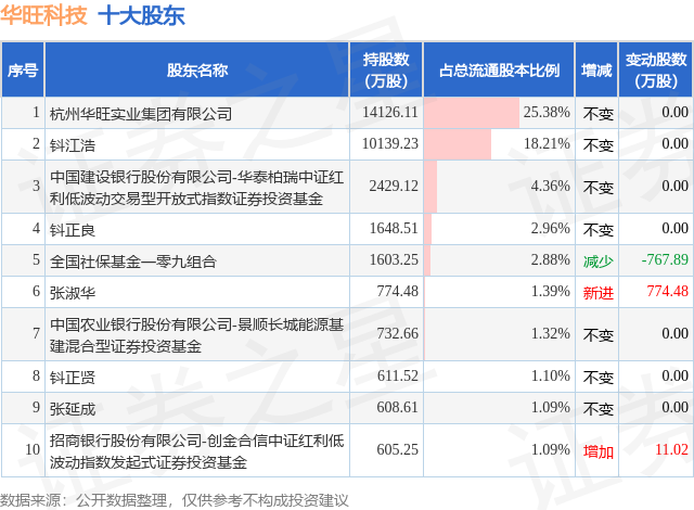 根据华旺科技2025年三季报公布的十大股东详情如下: