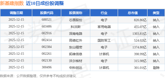 近10日内新基建(980029)指数成份股做了调整,新纳入了7只股票,剔除了1只股票。
