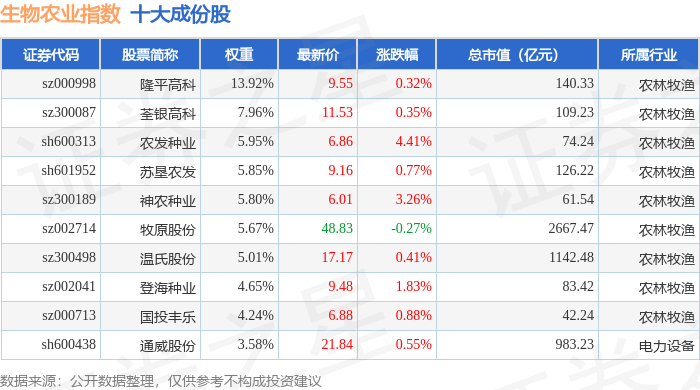近10日内生物农业(980072)指数成份股做了调整,新纳入了7只股票。