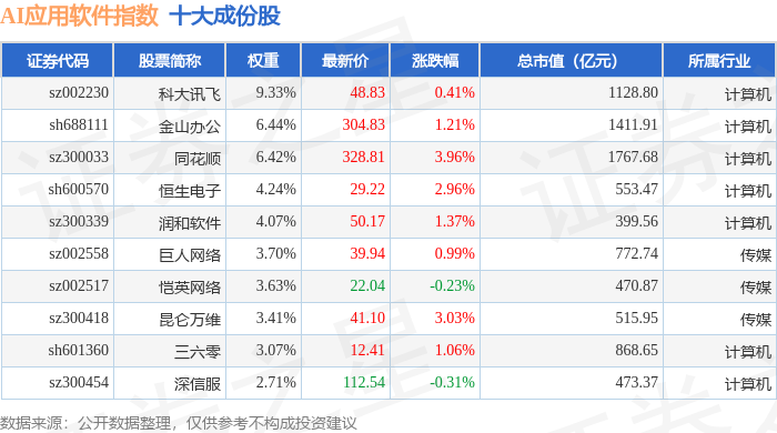 近10日内AI应用软件(980107)指数成份股做了调整,新纳入了3只股票,剔除了3只股票。