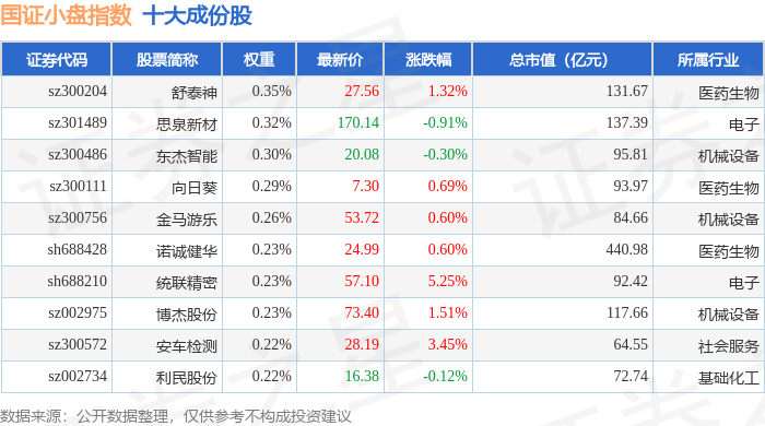 国证小盘(980202)指数十大成份股详情如下: