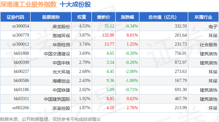 证券之星消息,12月5日,深港通工业服务(983055)指数报收于2220.79点,涨1.27%,成交148.07亿元,换手率1.28%。当日该指数成份股中,上涨的有82家,中国天楹以10.05%的涨幅领涨,下跌的有13家,光大环境以2.0%的跌幅领跌。