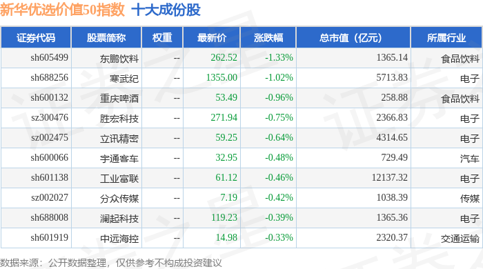 资金流向方面,新华优选价值50(989004)指数成份股当日主力资金净流出合计4.16亿元,游资资金净流入合计5.0亿元,散户资金净流出合计8376.63万元。成份股资金流向详情见下表: