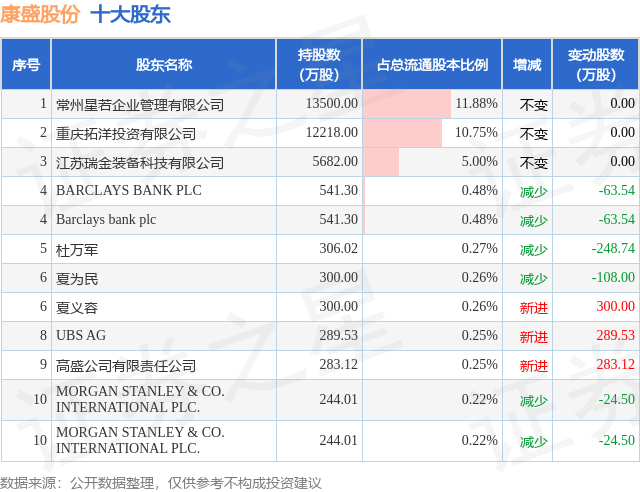根据康盛股份2025年三季报公布的十大股东详情如下: