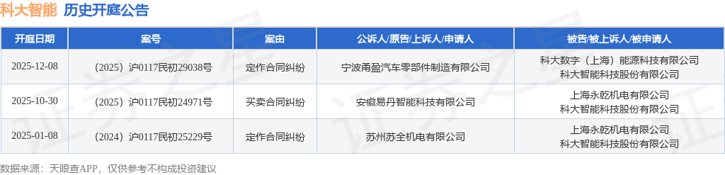 证券之星消息,根据天眼查APP显示,近日公布了一则科大智能科技股份有限公司作为被告/被上诉人的开庭公告,详细内容如下: