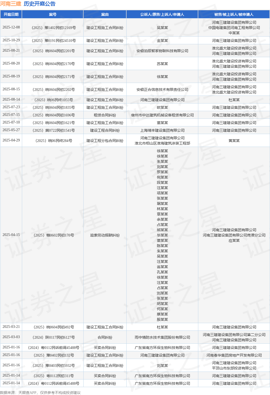 证券之星消息,根据天眼查APP显示,近日公布了一则河南三建建设集团有限公司作为被告/被上诉人的开庭公告,详细内容如下: