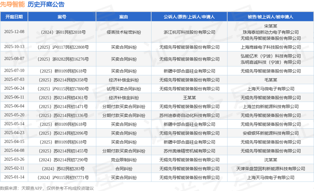 证券之星消息,根据天眼查APP显示,近日公布了一则无锡先导智能装备股份有限公司作为被告/被上诉人的开庭公告,详细内容如下: