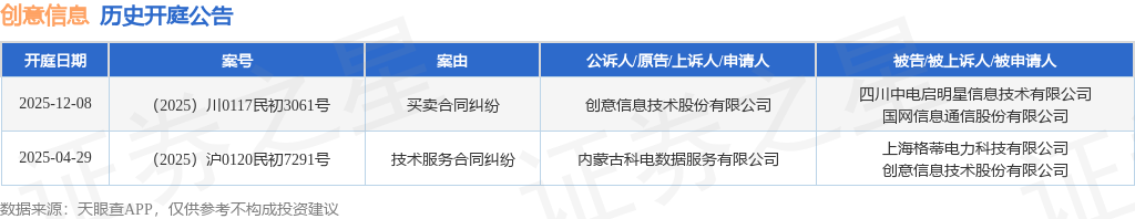 证券之星消息,根据天眼查APP显示,近日公布了一则创意信息技术股份有限公司作为原告/上诉人的开庭公告,详细内容如下: