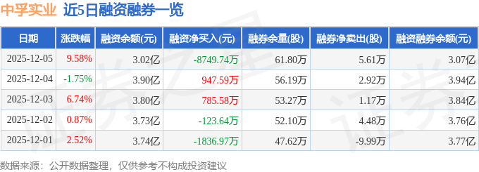 证券之星消息,截至2025年12月5日收盘,中孚实业(600595)报收于8.01元,上涨9.58%,换手率4.6%,成交量184.51万手,成交额14.61亿元。