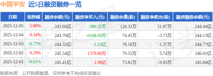 中国平安融资融券信息显示,融资方面,当日融资买入10.23亿元,融资偿还10.27亿元,融资净偿还380.35万元。融券方面,融券卖出54.41万股,融券偿还2.54万股,融券余量126.32万股,融券余额7830.58万元。融资融券余额244.44亿元。