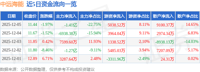 12月5日的资金流向数据方面,主力资金净流出1.41亿元,占总成交额22.75%,游资资金净流入5038.52万元,占总成交额8.11%,散户资金净流入9100.37万元,占总成交额14.65%。