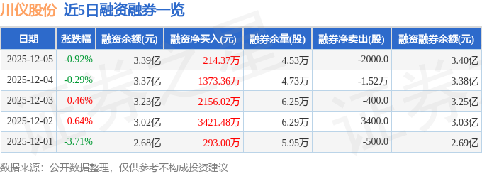 川仪股份融资融券信息显示,融资方面,当日融资买入2139.97万元,融资偿还1925.6万元,融资净买入214.37万元,连续3日净买入累计3743.76万元。融券方面,融券卖出500.0股,融券偿还2500.0股,融券余量4.53万股,融券余额106.82万元。融资融券余额3.4亿元。