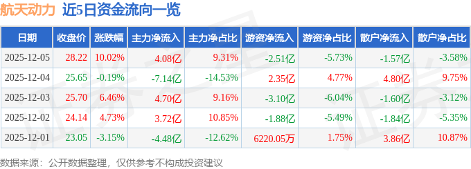 12月5日的资金流向数据方面,主力资金净流入4.08亿元,占总成交额9.31%,游资资金净流出2.51亿元,占总成交额5.73%,散户资金净流出1.57亿元,占总成交额3.58%。