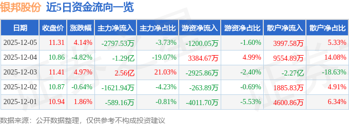 12月5日的资金流向数据方面,主力资金净流出2797.53万元,占总成交额3.73%,游资资金净流出1200.05万元,占总成交额1.6%,散户资金净流入3997.58万元,占总成交额5.33%。