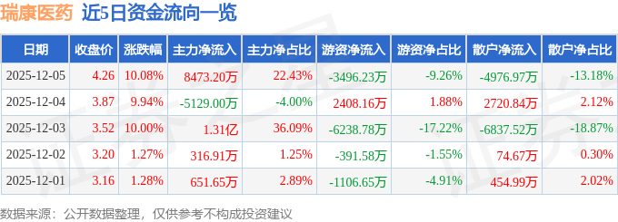 12月5日的资金流向数据方面,主力资金净流入8473.2万元,占总成交额22.43%,游资资金净流出3496.23万元,占总成交额9.26%,散户资金净流出4976.97万元,占总成交额13.18%。