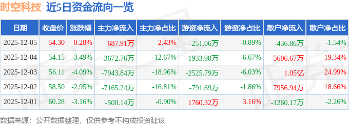 12月5日的资金流向数据方面,主力资金净流入687.91万元,占总成交额2.43%,游资资金净流出251.06万元,占总成交额0.89%,散户资金净流出436.86万元,占总成交额1.54%。