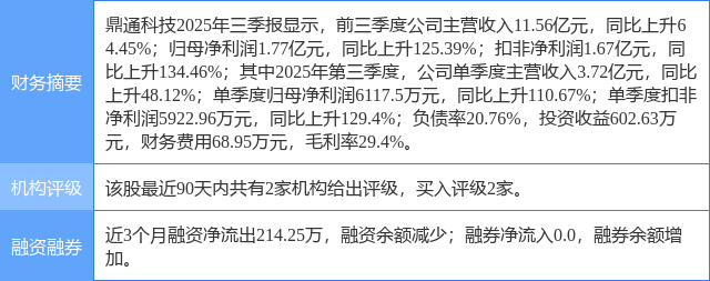 2025年10月27日,民生证券研究员崔若瑜,朱正卿发布了对鼎通科技的研报《2025年三季度报点评:业绩符合预期,AI驱动公司成长》,该研报对鼎通科技给出“买入”评级。研报中预计公司2025~2027年营业收入有望分别达16.03亿元、21.45亿元、27.18亿元,归母净利润有望分别达2.45亿元、3.26亿元、4.10亿元,对应PE分别为56/42/34X,我们认为行业高速发展的同时公司有望凭借自身技术优势快速成长,维持“推荐”评级。证券之星数据中心根据近三年发布的研报数据计算,该研报作者对此股的盈利预测准确度为55.05%。