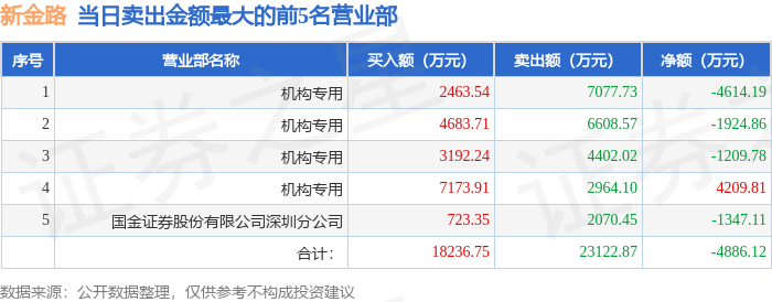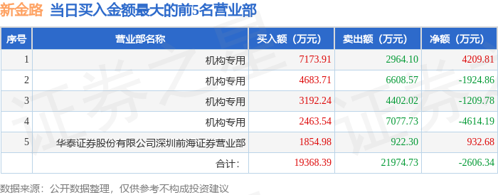 证券之星消息,沪深交易所2025年12月8日公布的交易公开信息显示,新金路(000510)因日跌幅偏离值达到7%的前5只证券登上龙虎榜。此次是近5个交易日内第2次上榜。