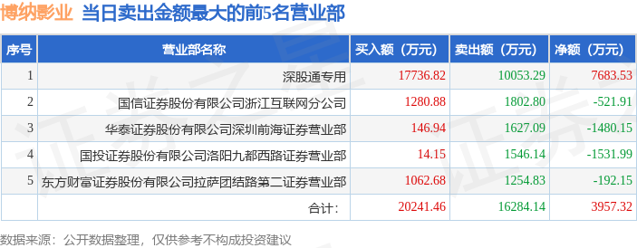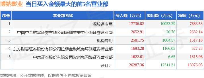 证券之星消息,沪深交易所2025年12月8日公布的交易公开信息显示,博纳影业(001330)因日涨幅偏离值达到7%的前5只证券登上龙虎榜。此次是近5个交易日内第2次上榜。