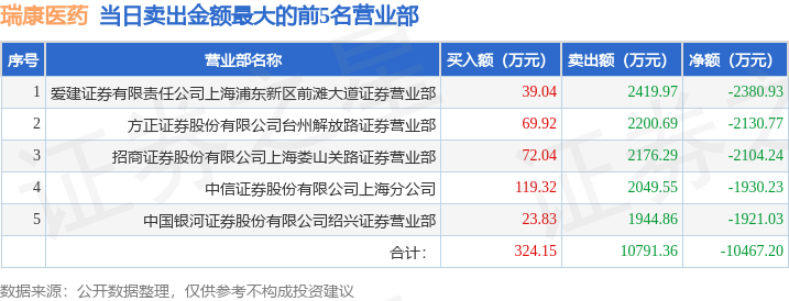 证券之星消息,沪深交易所2025年12月8日公布的交易公开信息显示,瑞康医药(002589)因日振幅值达到15%的前5只证券,日涨幅偏离值达到7%的前5只证券,日换手率达到20%的前5只证券登上龙虎榜。此次是近5个交易日内第2次上榜。