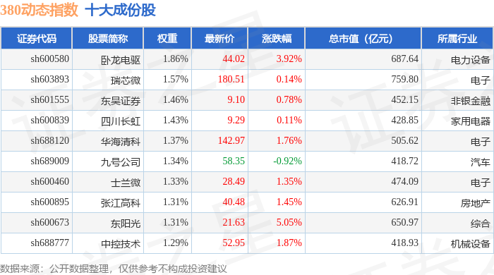 证券之星消息,12月8日,380动态(000141)指数报收于3764.71点,涨0.96%,成交1017.54亿元,换手率1.95%。当日该指数成份股中,上涨的有114家,瑞可达以20.0%的涨幅领涨,下跌的有70家,新泉股份以4.56%的跌幅领跌。