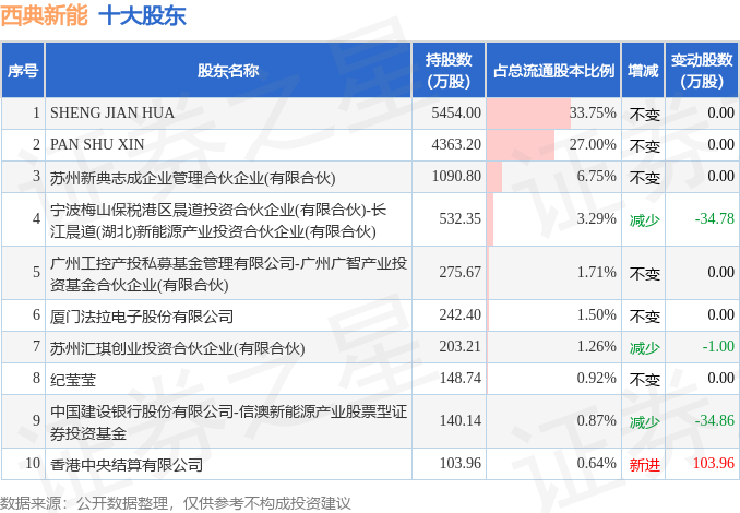 根据西典新能2025年三季报公布的十大股东详情如下: