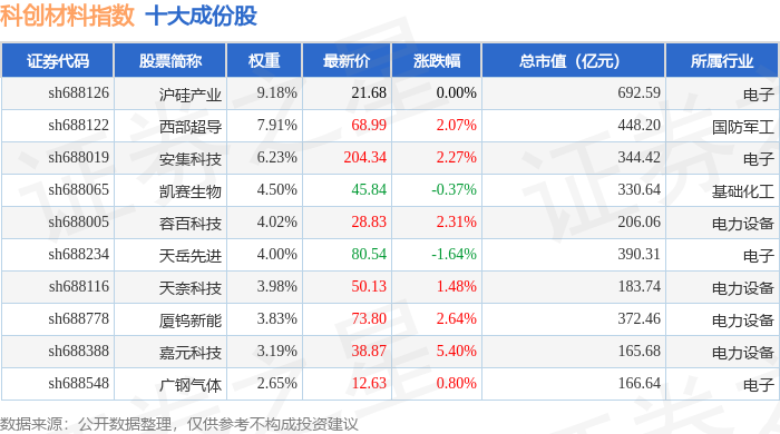 近10日内科创材料(000689)指数成份股做了调整,新纳入了2只股票,剔除了2只股票。