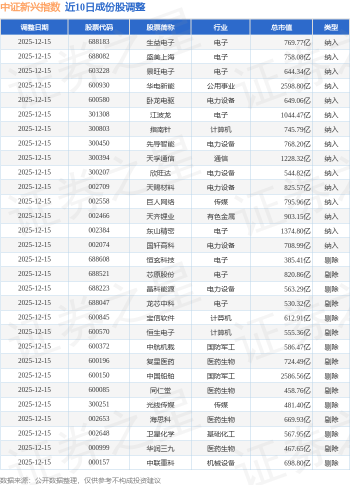 近10日内中证新兴(000964)指数成份股做了调整,新纳入了15只股票,剔除了15只股票。