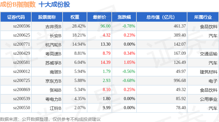 资金流向方面,成份B指(399003)指数成份股当日主力资金净流出合计564.87万元,游资资金净流入合计217.13万元,散户资金净流入合计347.74万元。成份股资金流向详情见下表:
