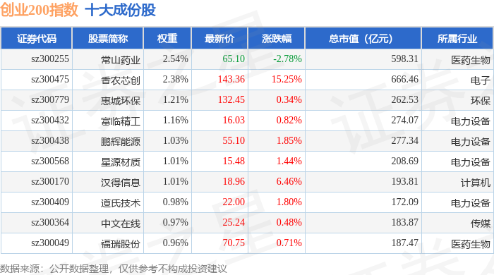 创业200(399019)指数十大成份股详情如下: