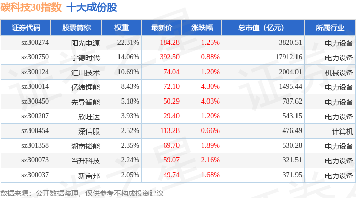 资金流向方面,碳科技30(399030)指数成份股当日主力资金净流入合计11.35亿元,游资资金净流出合计3.19亿元,散户资金净流出合计8.15亿元。成份股资金流向详情见下表:
