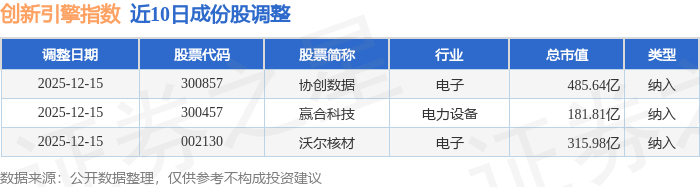 近10日内创新引擎(399050)指数成份股做了调整,新纳入了3只股票。