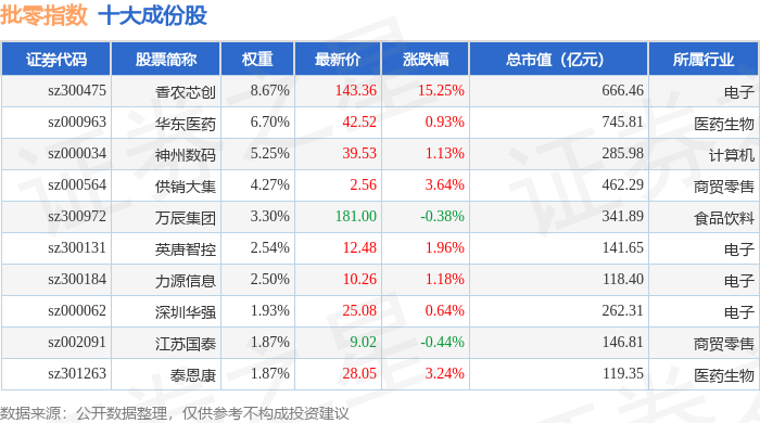 资金流向方面,批零指数(399236)成份股当日主力资金净流出合计9422.2万元,游资资金净流出合计1.98亿元,散户资金净流入合计2.93亿元。成份股资金流向详情见下表: