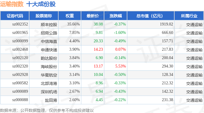 资金流向方面,运输指数(399237)成份股当日主力资金净流入合计4352.56万元,游资资金净流入合计6301.79万元,散户资金净流出合计1.07亿元。成份股资金流向详情见下表: