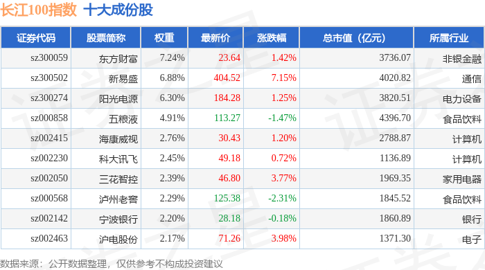 长江100(399278)指数十大成份股详情如下: