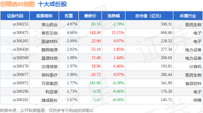 近10日内创精选88(399291)指数成份股做了调整,新纳入了24只股票。