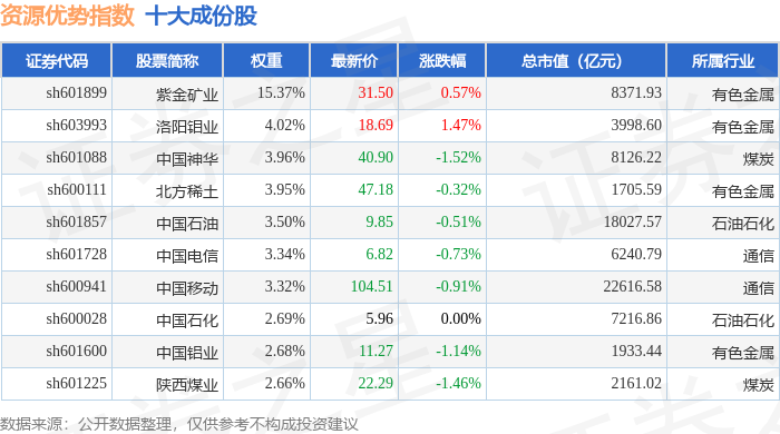 资金流向方面,资源优势(399319)指数成份股当日主力资金净流入合计2261.54万元,游资资金净流入合计3.15亿元,散户资金净流出合计3.37亿元。成份股资金流向详情见下表: