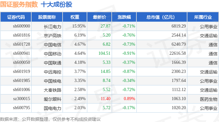 国证服务(399320)指数十大成份股详情如下: