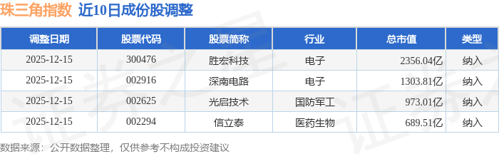 近10日内珠三角(399356)指数成份股做了调整,新纳入了4只股票。