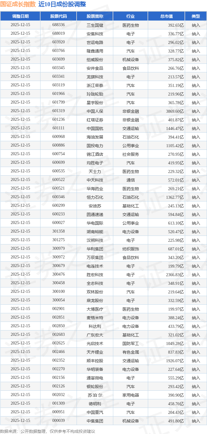 近10日内国证成长(399370)指数成份股做了调整,新纳入了47只股票。