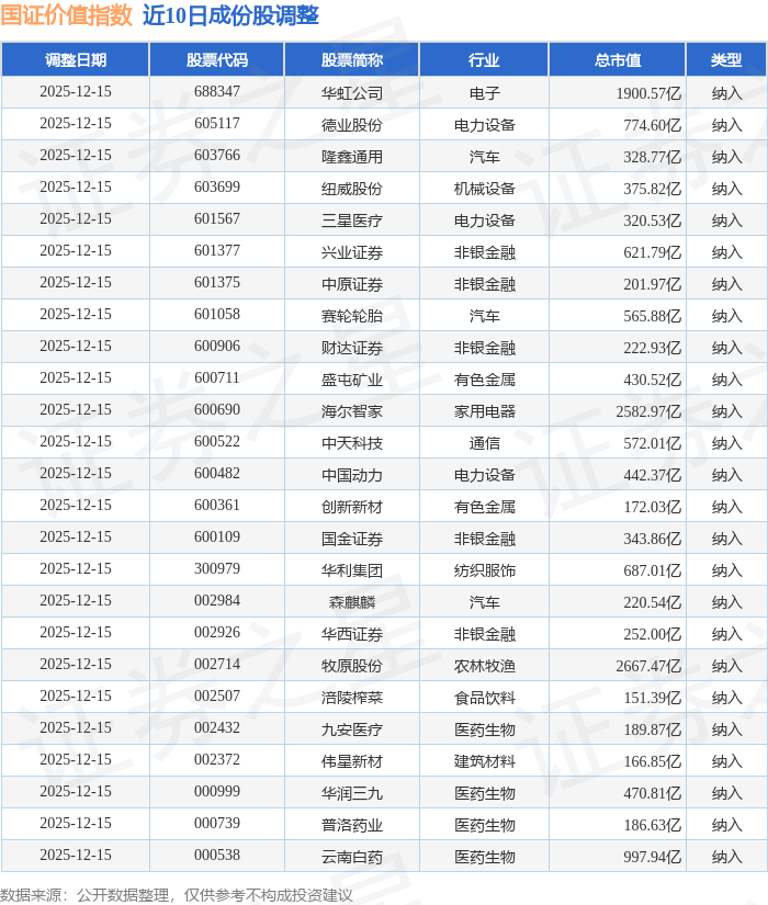 近10日内国证价值(399371)指数成份股做了调整,新纳入了25只股票。