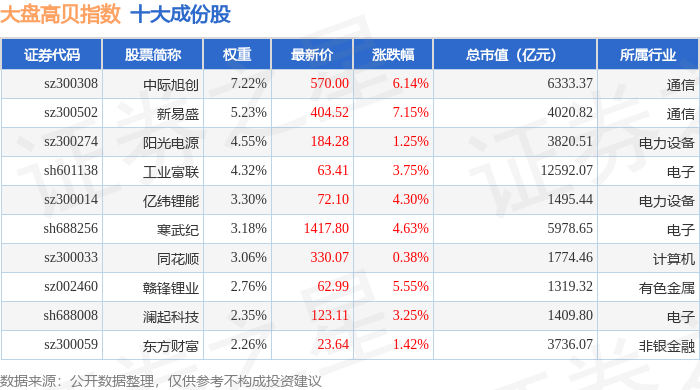 近10日内大盘高贝(399405)指数成份股做了调整,新纳入了18只股票。